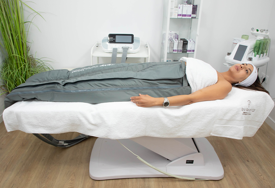 Procedimiento que consiste en la aplicación de presión de aire, a través de un traje neumático en miembros inferiores y en abdomen. Conseguimos una mejora del trofismo y de recuperación de la elasticidad cutánea, estimula la circulación de retorno venosa y linfática, se produce una reducción de la celulitis edematosa, contribuye a la recuperación muscular por su acción antiinflamatoria, produce una desintoxicación general del organismo, se utiliza para aplicar los cuidados posparto y post cirugía estética y contribuye a la relajación y bienestar general.